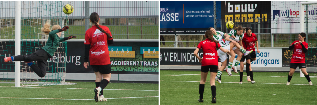 Ik heb zelf nooit gevoetbald en ben nu twee keer bij een wedstrijd van MO15 geweest. Ik zie wel een tactisch verschil met het voetbal van de jongens, zonder dat ik daar een mening over heb. Ook in deze wedstrijd zie je dat je als voetbalster weinig of geen ruimte krijgt. En dan zie je dus veel individuele gevechten om de bal in plaats van aanvallen waarbij de bal snel heen en weer getikt wordt.